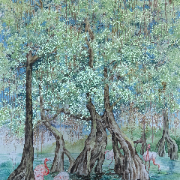 작가는 '현실의 자연'이 아닌, 상상력으로 재구성된 자연을 탐구한다. 이 자연은 단순한 풍경 묘사가 아니라, 작가가 겪어온 감정과 경험을 바탕으로 형성된 또 하나의 세계다. 그녀의 작업은 관람자가 작품을 '바라보는 것'을 넘어, 내면의 서사를 따라 들어가도록 이끈다.